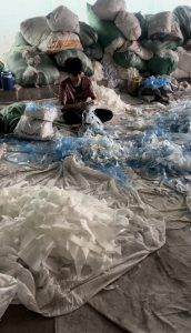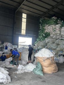 • Phân loại từng loại nguyên liệu: xơ sợi polyester, keo đầu PET, vỉ PET, vải poly…